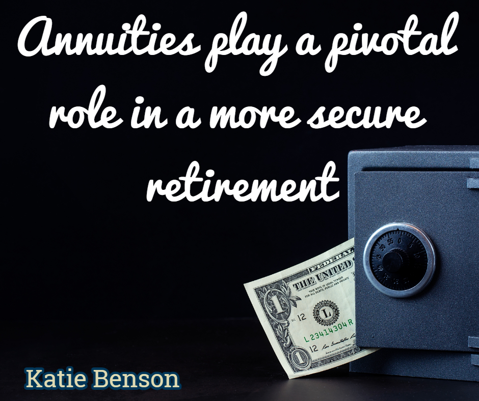 Annuities play a pivotal role in building a robust, secure retirement- Katie Benson Leave a Legacy, Protect your wealth, Retirement